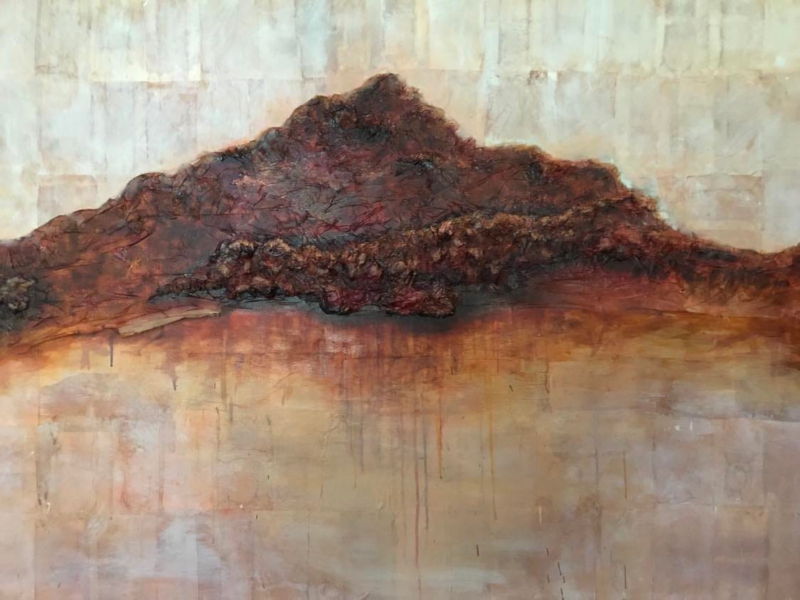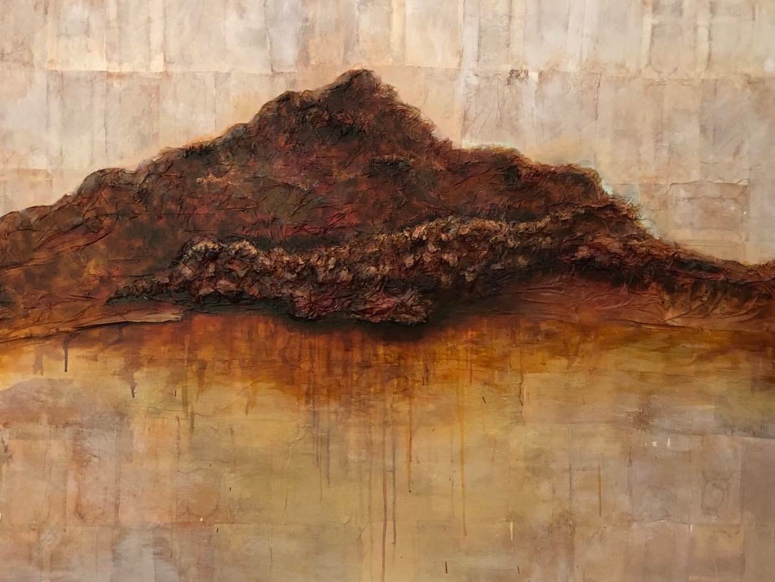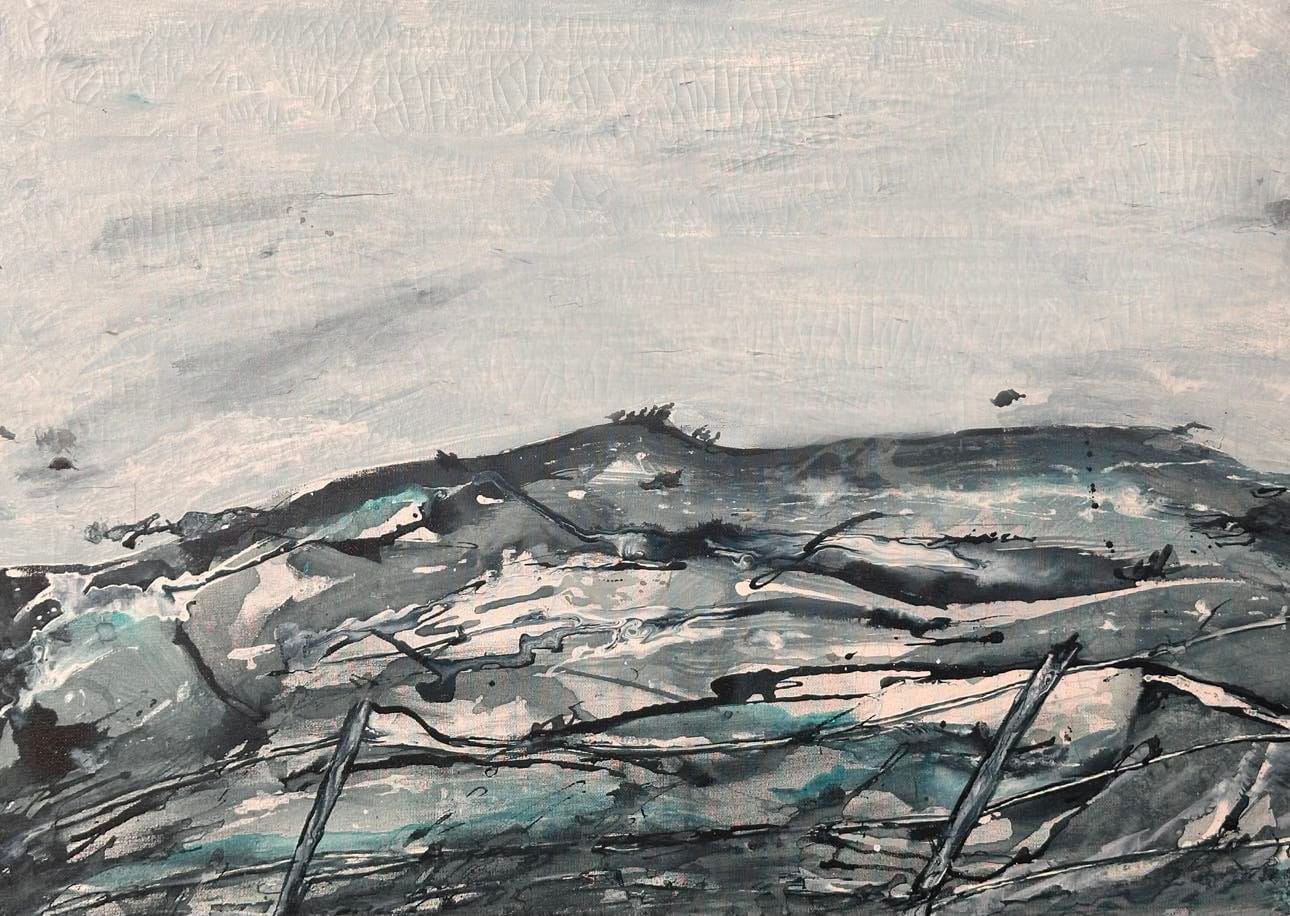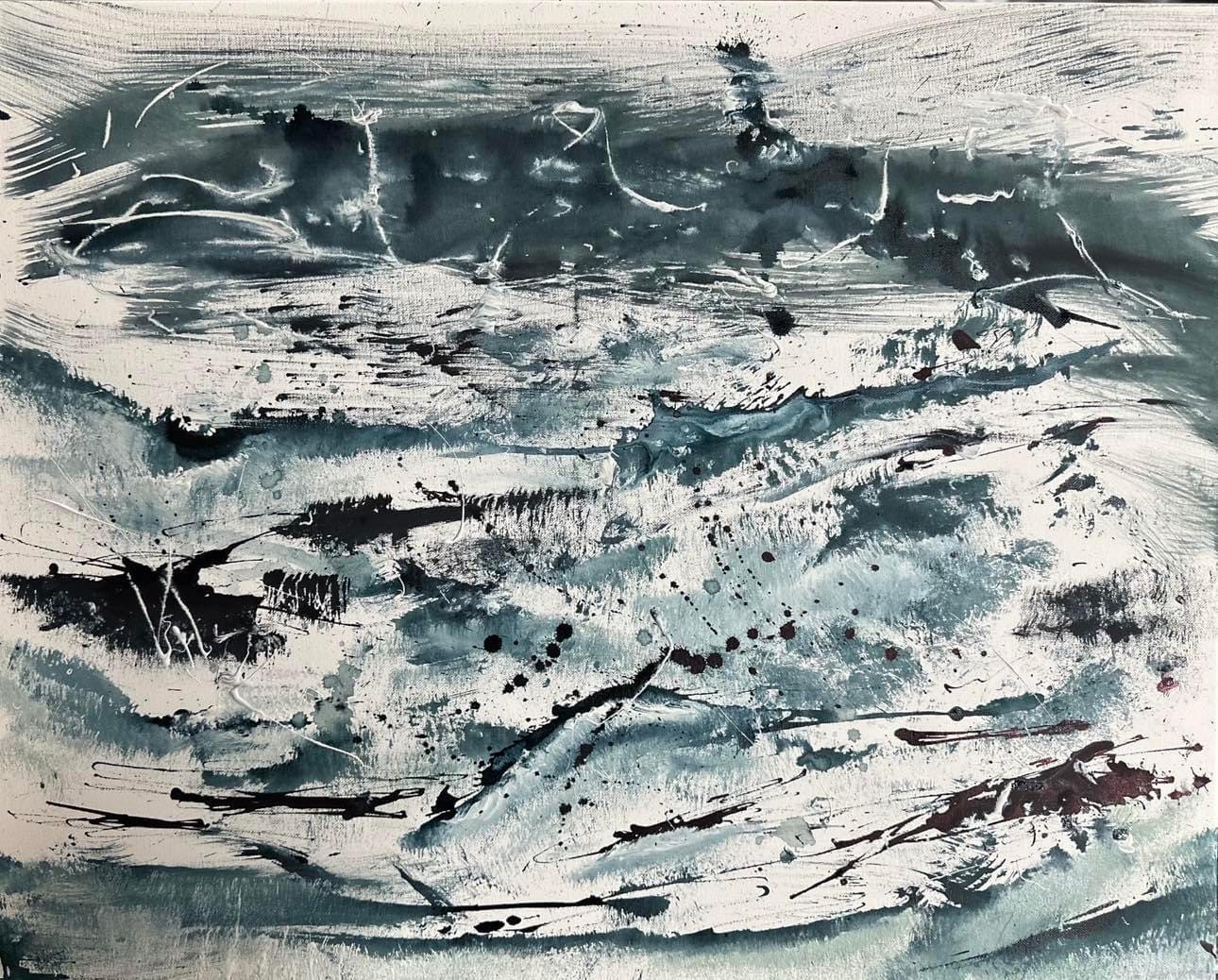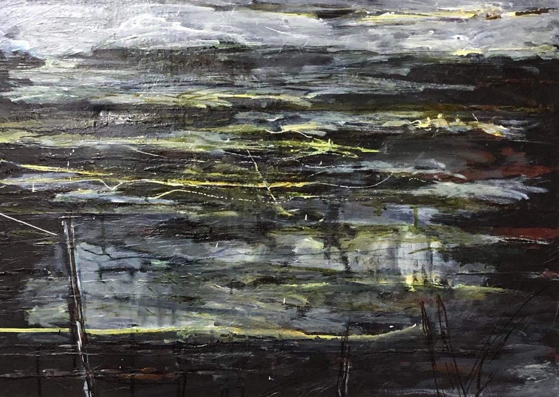 Ink sand on ink on canvas. 100 x 130cm. Photograph by the artist.