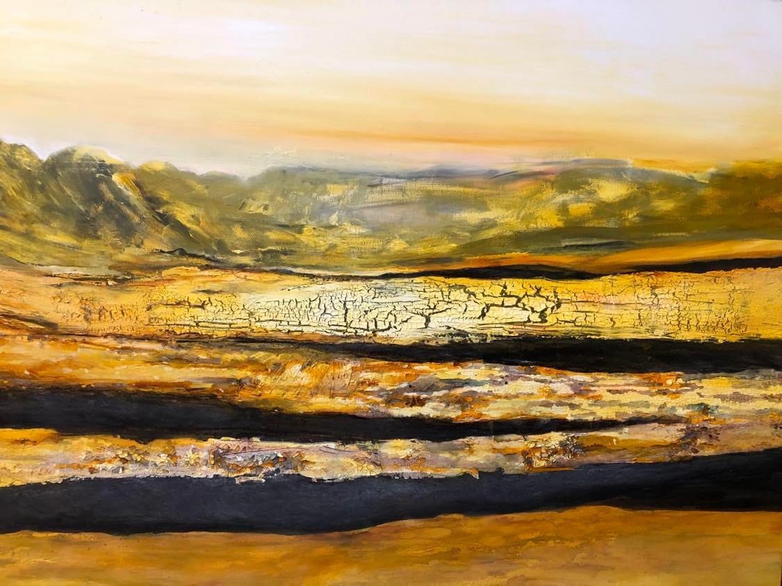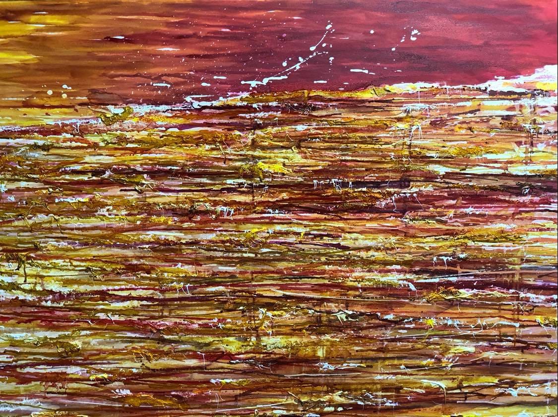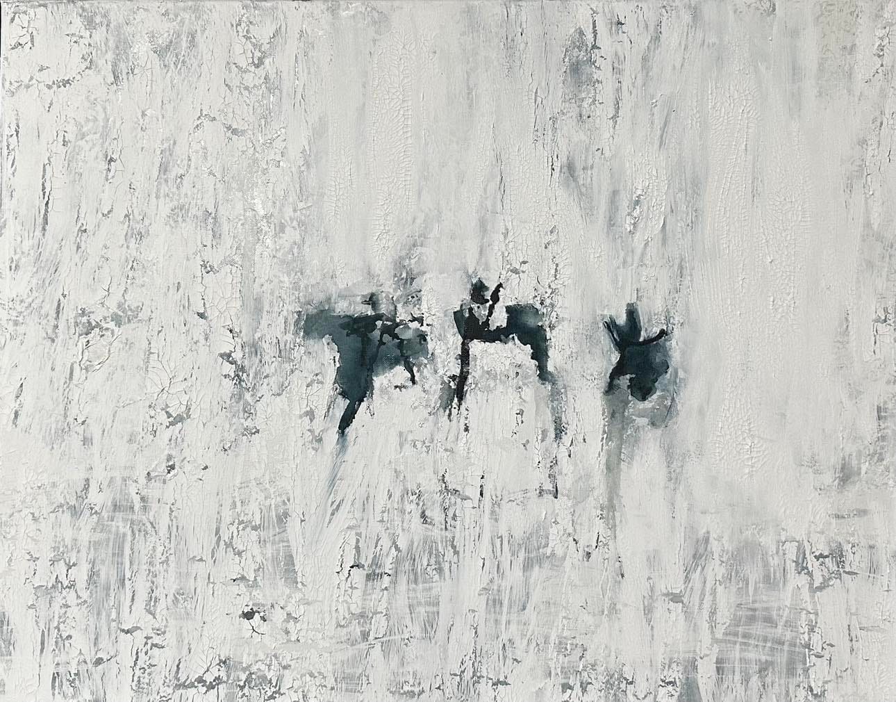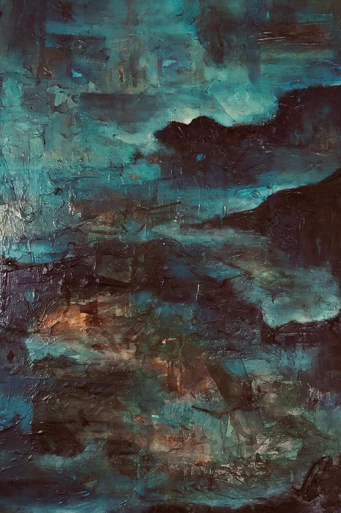 Ink sand on ink on canvas. 100 x 130cm. Photograph by the artist.