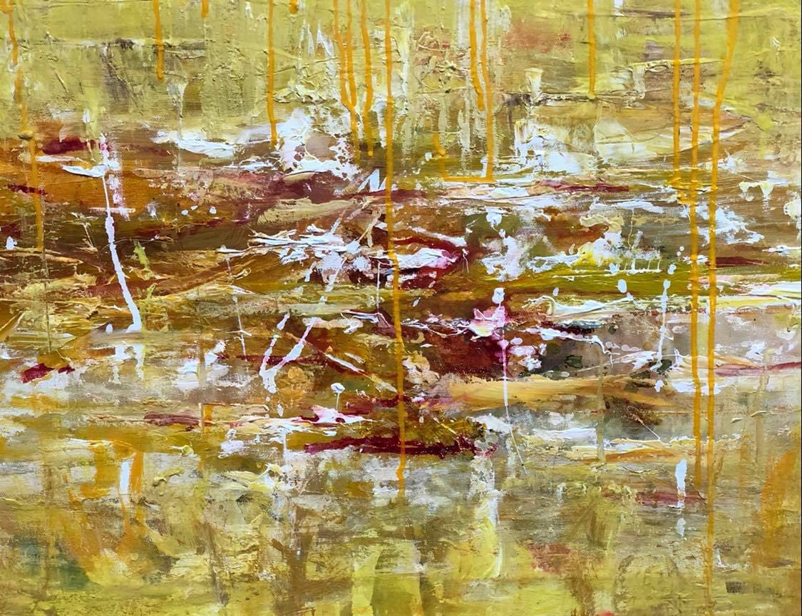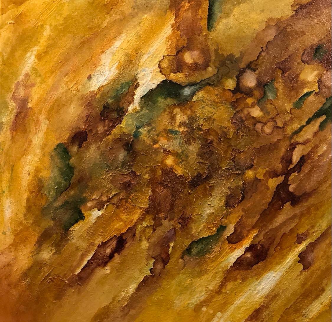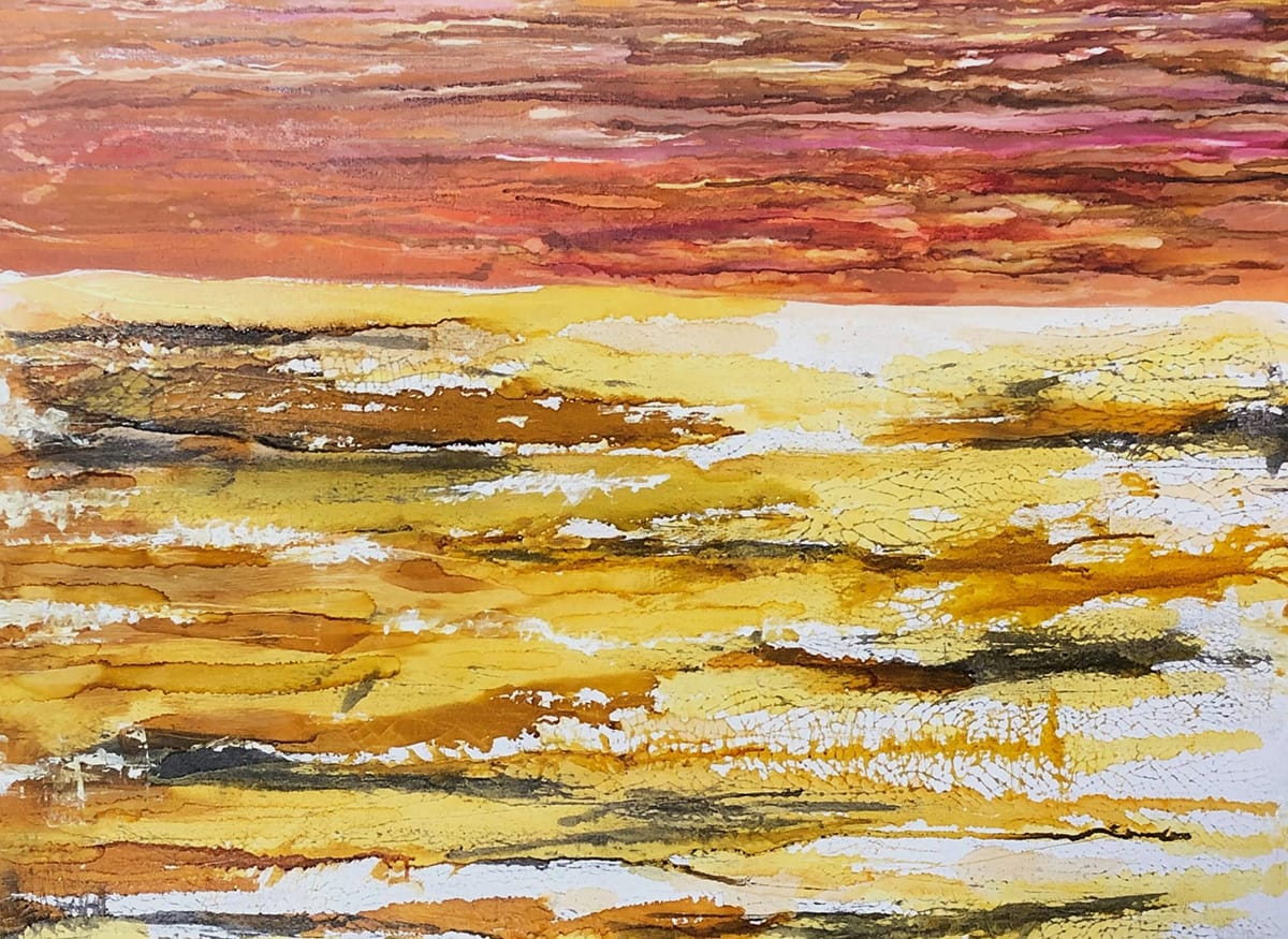 Ink on ink on wax on acrylic on canvas. 50 x 70cm. Photograph by the artist.